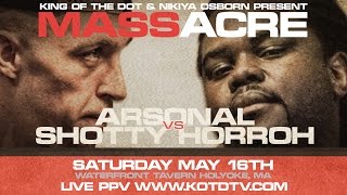 05.12.2015King of the Dot drops the promo trailer for the upcoming rematch battle between Arsonal and Shotty Horroh going down at their Massacre event on May 16.